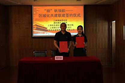 ? ? ? 2019年8月28日上午,選泉設計協(xié)同浦東新區(qū)衛(wèi)監(jiān)所、上海電信浦東局三林世博分局、上海銀行自貿(mào)試驗區(qū)分行三家企業(yè),與楊思社區(qū)舉行“楊”帆領航——區(qū)域共建聯(lián)建簽約儀式。三林鎮(zhèn)黨建服務中心主任唐崢華、楊思社區(qū)主任唐義軍、楊思社區(qū)黨委書記朱晨等領導出席儀式,選泉設計公司黨務助理王雪娜及其他三家公司的黨務代表積極投身其中。