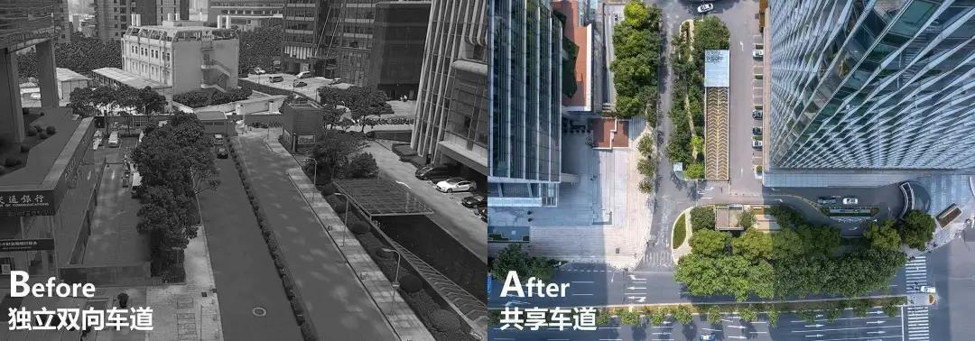 ▼改造后位于太平金融大廈及金磚大廈之間的共享車道©選泉設(shè)計(jì)
