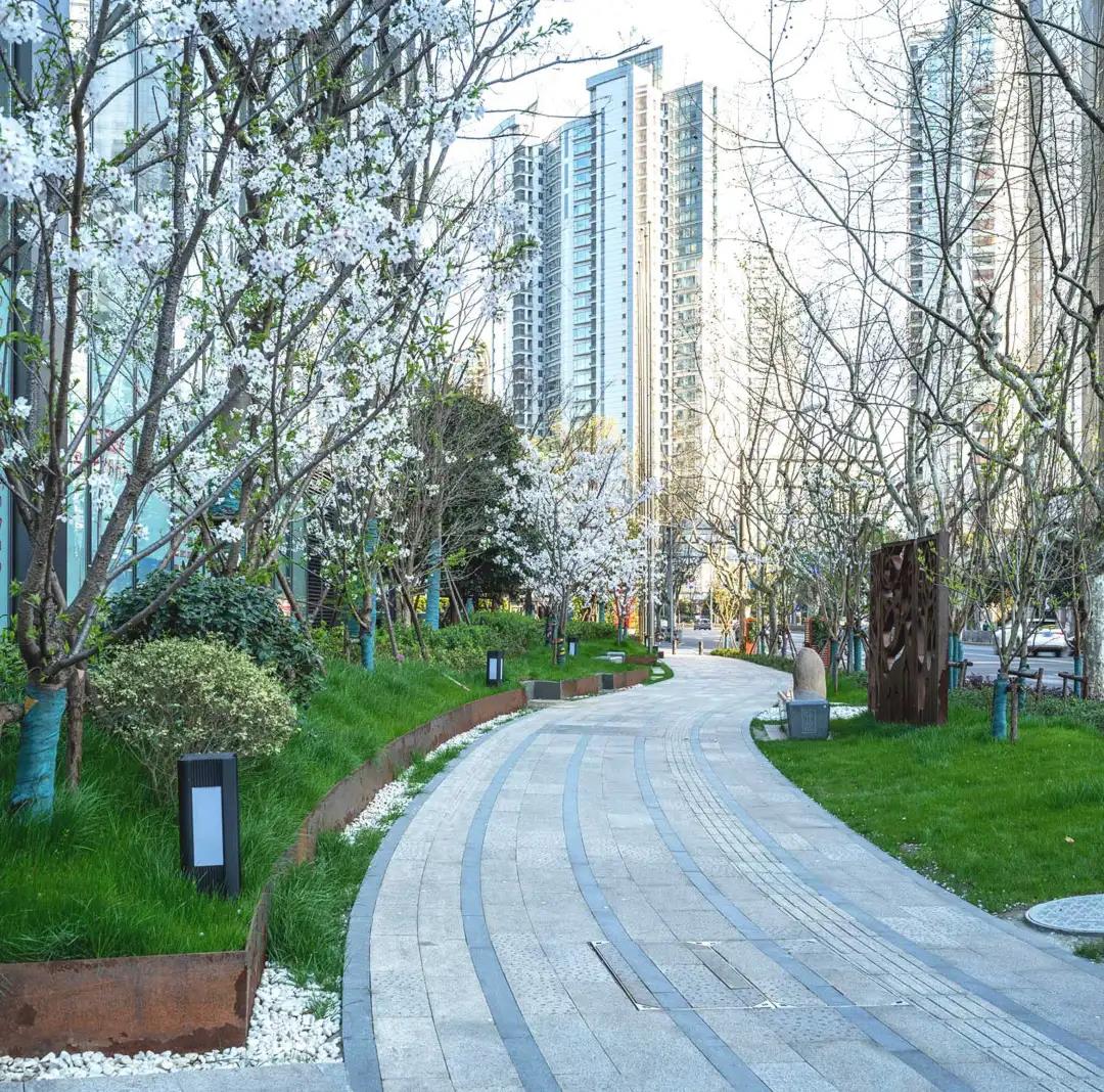 將傳統(tǒng)的直線人行道設(shè)計(jì)改為曲直結(jié)合的設(shè)計(jì),即將筆直的市政人行道變成綠化帶里中曲折有致的休閑步道。