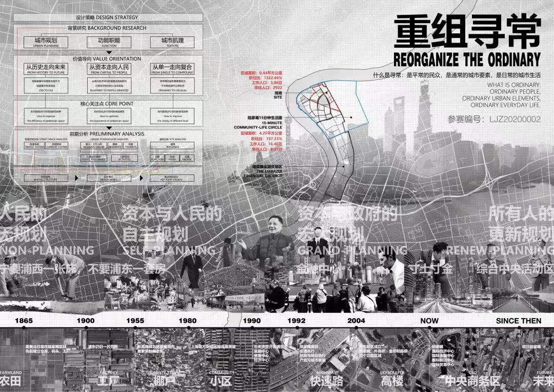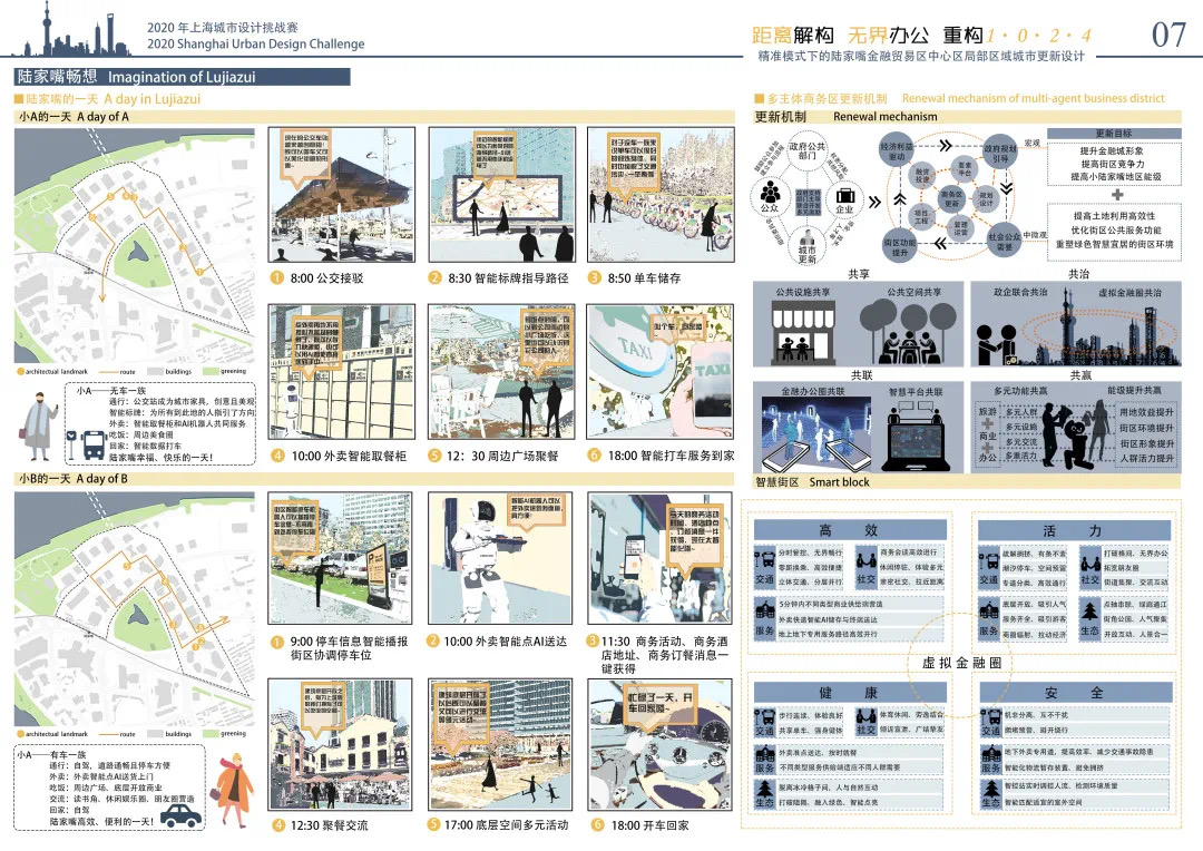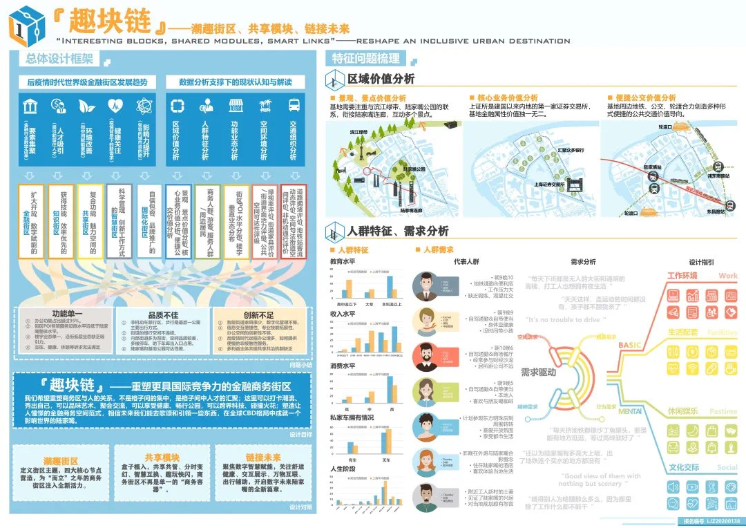 2020上海城市設計挑戰(zhàn)賽選取陸家嘴金融貿(mào)易區(qū)中心區(qū)(小陸家嘴)局部區(qū)域作為設計對象,以“更具國際競爭力的商務街區(qū)”為設計目標,從商務區(qū)功能活力提升、慢行空間品質(zhì)提升、多主體商務區(qū)更新機制探索和智慧街區(qū)規(guī)劃等方面入手,探索商務區(qū)的存量更新。挑戰(zhàn)賽以綜合應用大數(shù)據(jù)等信息技術支撐城市設計為導向,為商務區(qū)存量更新提供創(chuàng)新性設計思路。