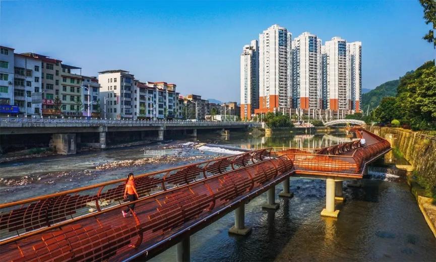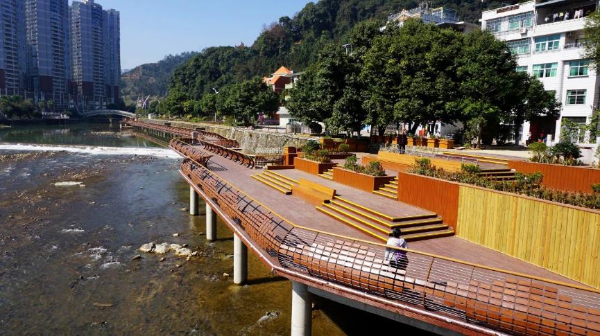 ▼借鑒非物質(zhì)文化遺產(chǎn)“大田板凳龍”設(shè)計形成河濱棧道 攝影 大田河長制