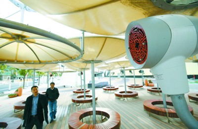 ????上海世博會(huì)預(yù)計(jì)將迎來(lái)7000萬(wàn)參觀者,日均客流量40萬(wàn)人次,極端高峰日客流量更將達(dá)到80萬(wàn)人次。面對(duì)如此龐大的客流量,除了展館接待,園區(qū)內(nèi)的公共區(qū)域?qū)⒚媾R嚴(yán)峻考驗(yàn)。日前,記者在世博會(huì)浦東園區(qū)場(chǎng)地景觀總設(shè)計(jì)師林選泉的帶領(lǐng)下,參觀體驗(yàn)了世博園區(qū)內(nèi)各類公共服務(wù)設(shè)施,在注重功能性的同時(shí)更加人性化,以最大可能方便游客,減少參觀者的游園負(fù)擔(dān)。