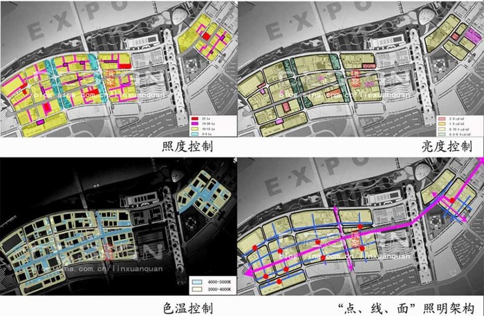以人性化照明為宗旨,營(yíng)造安全舒適的城市照明環(huán)境,充分體現(xiàn)世博會(huì)特色;