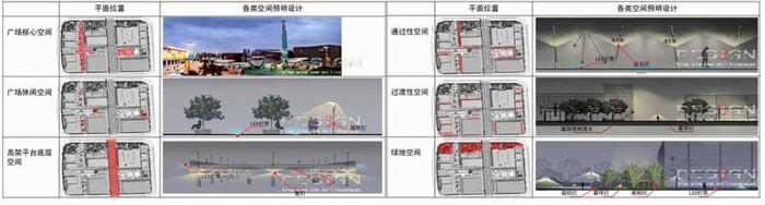 高架平臺(tái)照明為照明設(shè)計(jì)最主要的軸線;場(chǎng)地中縱向及橫向的通過(guò)性空間照明將是構(gòu)成園區(qū)照明網(wǎng)絡(luò)的脈絡(luò)。