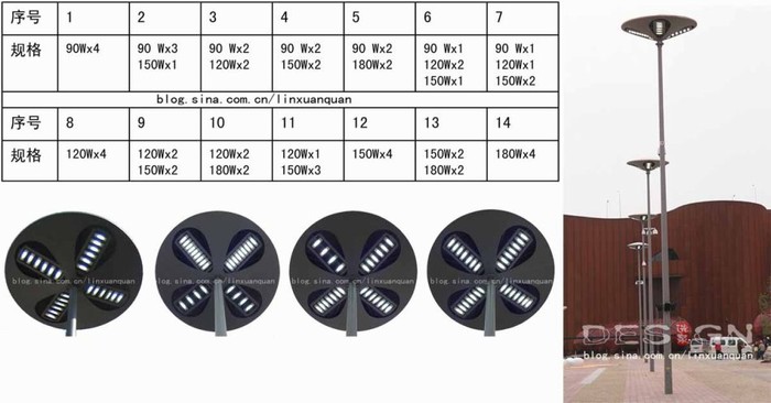 燈頭功率考慮展館、廣場(chǎng)、高架步道等周邊照明實(shí)體的特點(diǎn),依燈桿位置由90W、120W、150W、180W四種規(guī)格組合,確保滿足不同面積部份的平均照度值和照度均勻度的功能要求,同時(shí)減少照明方向性對(duì)人流行進(jìn)以及對(duì)各展館的外立面效果的帶來(lái)的影響。