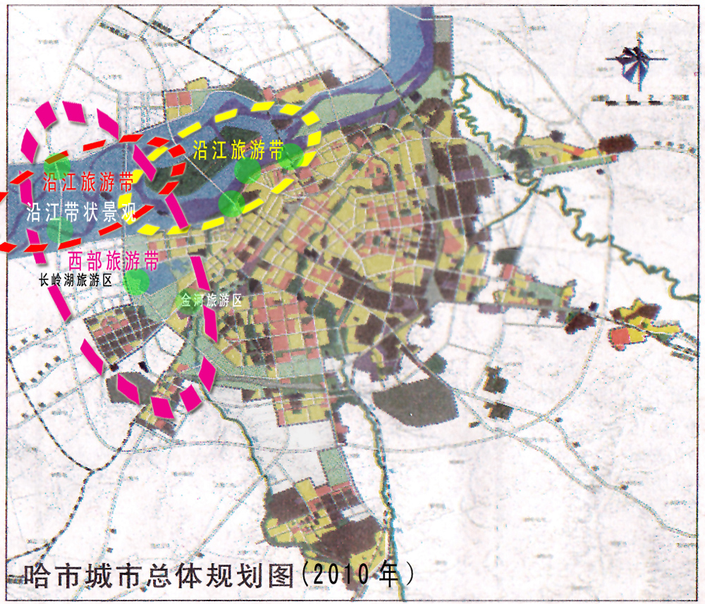 黑龍江省旅游業(yè)開(kāi)發(fā)的“OKL”框架設(shè)想中,哈爾濱市是其“O”字的中心,哈爾濱市制定了旅游業(yè)“九五”計(jì)劃與2010年長(zhǎng)期規(guī)劃綱要,提出了在旅游產(chǎn)品開(kāi)展中,除繼續(xù)拓展冰雪旅游、金源文化開(kāi)發(fā)利用外,要“利用松花江旅游資源優(yōu)勢(shì),開(kāi)辟沿江旅游帶,形成新景區(qū),再創(chuàng)優(yōu)勢(shì)”。