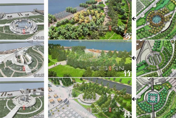 活力的濱水區(qū)需要多功能有機混合,在濱江帶4.7米最高通航水位以上構(gòu)筑以“霧、林、竹”為主題的體驗單元,形成霧之園、林之園、竹之園,形成節(jié)點停留空間,滿足人流休閑、游憩需求(圖8)。