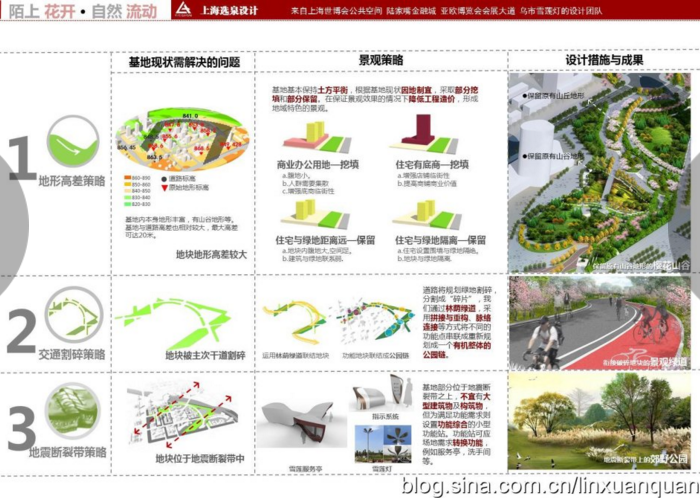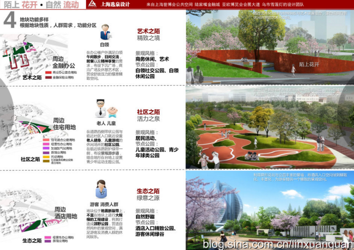 ?這些被城市道路割碎的綠地,通過場地中統(tǒng)一的林蔭綠道將整個綠地空間串起成為一體空間。并且通過極具個性化的植物特色營造,如櫻花、丁香等形成辨識性的景觀大道。