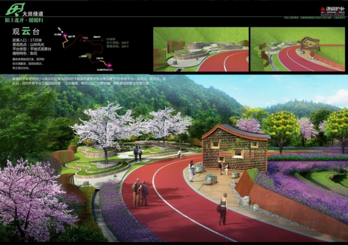 同時(shí)休息平臺(tái)又是沿線(xiàn)具有“山水城鎮(zhèn)、梯田山谷、山野林地”
