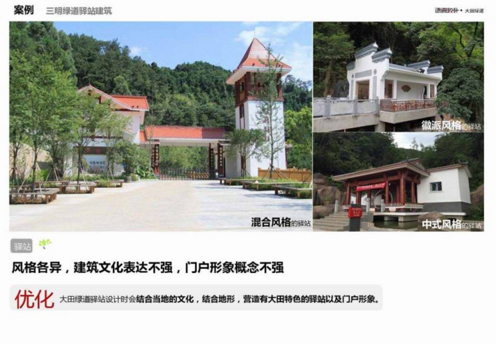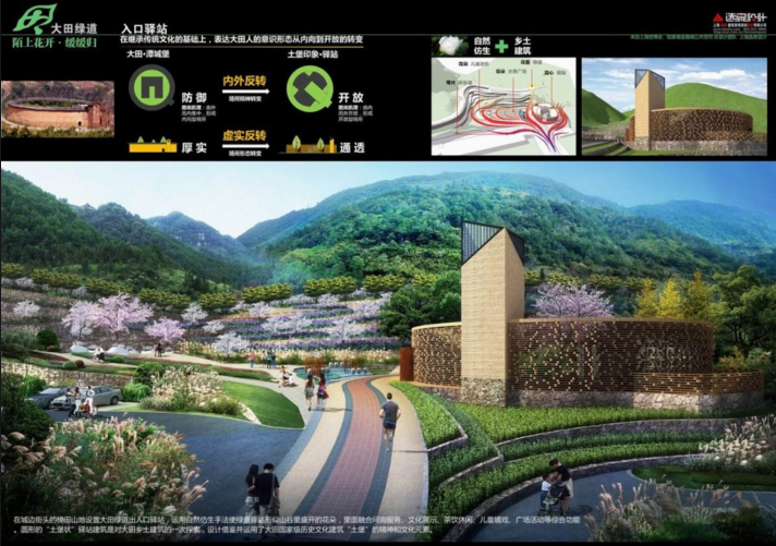 在城邊街頭的梯田山地設(shè)置大田綠道出入口驛站,