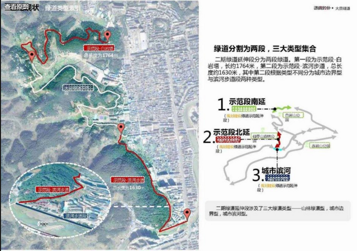總長(zhǎng)度為6.1Km,路幅寬4.5米,其中新建綠道2.3公里。