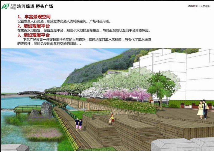 同時(shí)建設(shè)1.6公里長(zhǎng)的濱河段大田綠道。一個(gè)工程項(xiàng)目的成功是個(gè)系統(tǒng)工程,需要天時(shí)、地利、人和,取決于建設(shè)、設(shè)計(jì)、施工、運(yùn)營(yíng)、管理等方面。