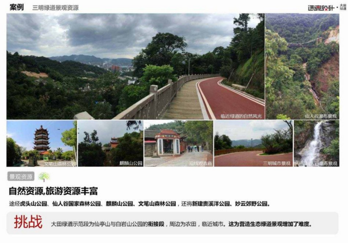 2015年8月大田縣委、政府、人大等會(huì)議審核通過(guò)選泉設(shè)計(jì)提供的大田綠道示范段實(shí)施方案,
