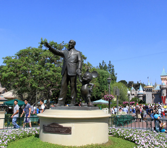 很多人的童年都是通過迪斯尼動(dòng)畫了解迪斯尼的,迪斯尼主題樂園的產(chǎn)生在于創(chuàng)始人華特先生的一個(gè)想法:建造“一個(gè)供父母與子女一起玩樂的家庭樂園。”因此,其打造的產(chǎn)品是以家庭市場為主,主打夢幻童話的游樂體驗(yàn)。而迪斯尼之所以取得成功,在于迪斯尼公司一種近于教派一樣的企業(yè)文化,在新進(jìn)員工的培訓(xùn)教科書中有下面的警句:“我們在迪斯尼樂園里會(huì)疲倦,但是,永遠(yuǎn)不能厭煩,而且,即使第一天很辛苦,我們也要表現(xiàn)出快樂的樣子。必須展現(xiàn)真誠的笑容,必須發(fā)自內(nèi)心……如果什么東西都幫不上忙,請記?。何沂穷I(lǐng)薪水來微笑的[1]。”總的說來,迪斯尼產(chǎn)業(yè)是一個(gè)生產(chǎn)“快樂”的產(chǎn)業(yè),并將這樣的理念貫穿于迪斯尼樂園的建造與運(yùn)營的每個(gè)細(xì)節(jié)中。本文將結(jié)合筆者對美國奧蘭多、洛杉磯以及日本東京這三大迪斯尼主題公園的考察來談一些感受。