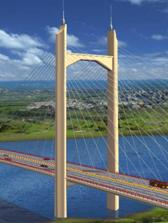 斜拉橋其剛度大、空氣動(dòng)力性能好,且簡捷流暢、連續(xù)舒展、輕巧纖細(xì)、、向上動(dòng)勢感強(qiáng),體現(xiàn)橋梁的現(xiàn)代美。它與懸索橋同屬懸吊式結(jié)構(gòu),在景觀特征上有共同之處,與其他橋型相比,都增加了塔和索的構(gòu)造,在空間構(gòu)圖上對單維突出的水平大梁起到了協(xié)調(diào)比例的作用。斜拉橋橋型景觀主要是以豎直線的橋塔、斜直線的拉索、拱曲線的主梁等為主基調(diào),斜拉橋的橋體景觀印象中,是以剛性的美為審美主格調(diào)。斜拉橋的橋塔、主梁、拉索、橋墩等橋梁主體結(jié)構(gòu)構(gòu)件的景觀設(shè)計(jì)是橋梁(總體)景觀設(shè)計(jì)的重要組成部分,影響著橋梁整體風(fēng)格和形象。