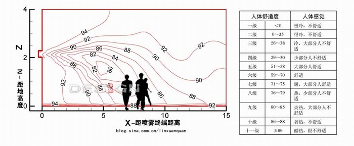 ??? 降低空氣溫度是最直接有效的改善人們體感舒適度的方式,在夏季的世博場(chǎng)地,若能使局部空間的環(huán)境溫度降低3-5度,可以極大改善參觀游客的體感舒適度。