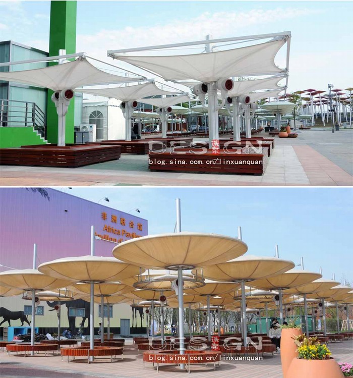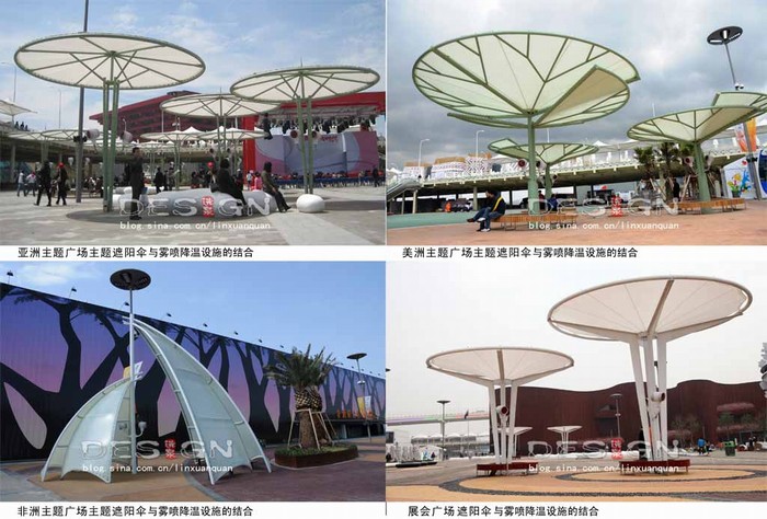 圖7:懸掛式噴霧終端和世博主題遮陽(yáng)傘結(jié)合 |