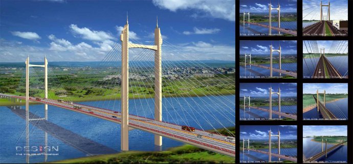橋梁架在河流上作為景觀裝點(diǎn)著大地,一座大橋由于本身規(guī)模宏大,氣勢磅礴,自然成為獨(dú)立景致,以而成為該環(huán)境主要景觀。