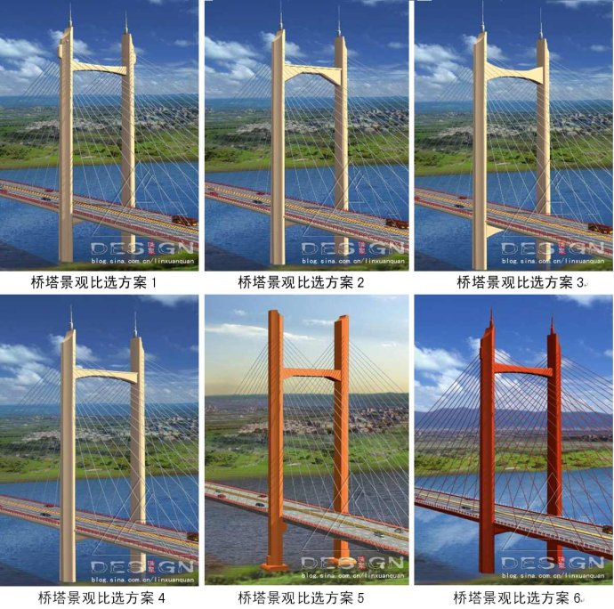 ( 圖4--圖9 為松花江大橋橋塔造型設(shè)計(jì)部分方案)